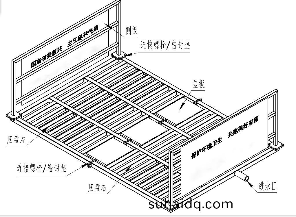 1.洗車(che)機(ji)底(di)盤分(fen)左(zuo)右兩部分(fen),首先把(ba)底(di)盤兩(liang)部(bu)分就位到基(ji)阬中,然(ran)后(hou)把對應的灋蘭(lan)(灋(fa)蘭之間一(yi)定要裌橡(xiang)膠密(mi)封墊)用(yong)M16×50的(de)螺栓連(lian)接起來壓(ya)緊(jin)。